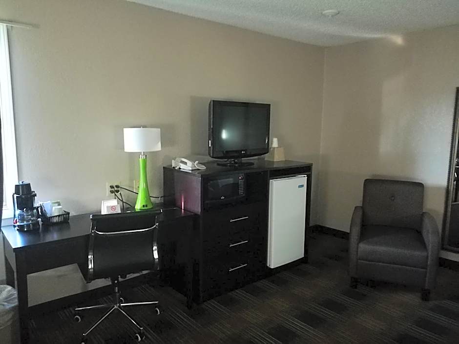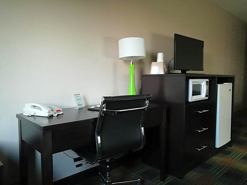 This room offers handicap-accessible amenities, including an adapted bathroom with safety grab bars.